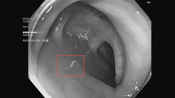 - Ký sinh trùng: Hình ảnh nội soi phát hiện có giun đang di chuyển trong lòng đại tràng.