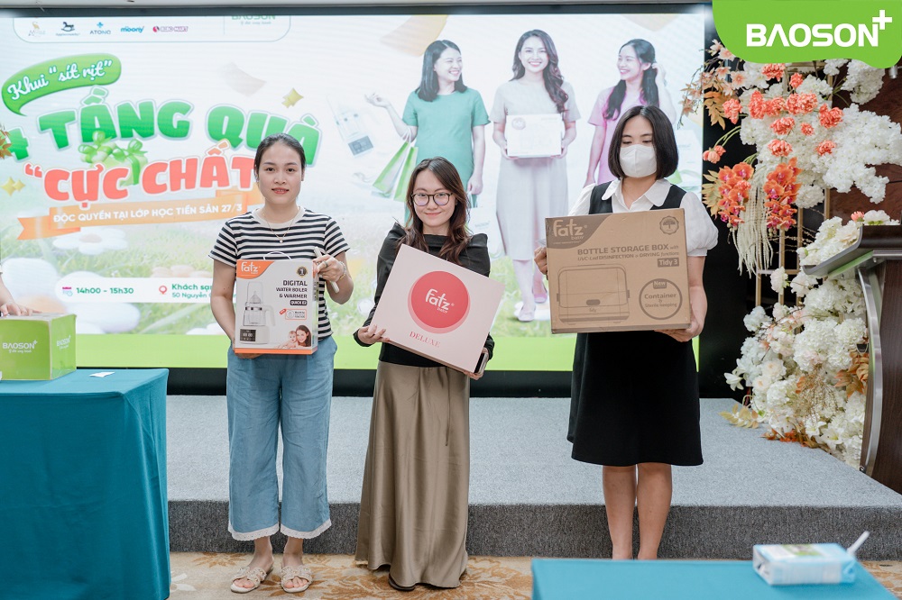 Khép lại buổi học là không khí vui tươi, ấm áp khi các mẹ bầu khi nhận về nhiều phần quà ý nghĩa từ các nhãn hàng đồng hành. Những món quà không chỉ mang giá trị thiết thực mà còn thể hiện sự tri ân từ Bảo Sơn và các đối tác dành cho các gia đình đã tin tưởng lựa chọn dịch vụ.