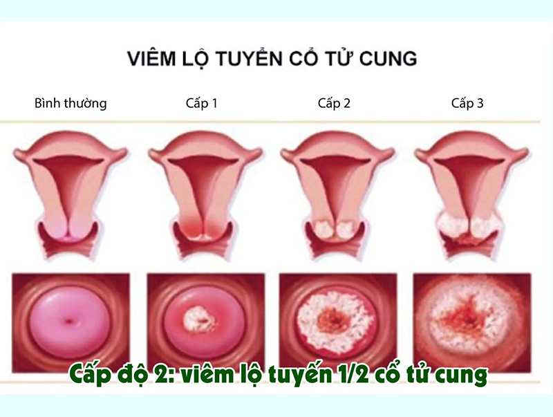 Trong khi đó, viêm lộ tuyến cổ tử cung là tình trạng tổn thương xảy ra tại cổ tử cung. Bệnh thường biểu hiện bằng khí hư ra nhiều, kéo dài và có mùi khó chịu. Người bệnh có thể ít ngứa hơn nhưng lại gặp tình trạng dai dẳng, thậm chí đau rát hoặc ra máu khi quan hệ. Do vị trí tổn thương sâu hơn, viêm lộ tuyến có nguy cơ gây viêm nhiễm lan rộng lên các cơ quan sinh sản khác, ảnh hưởng đến khả năng mang thai nếu không được điều trị kịp thời.